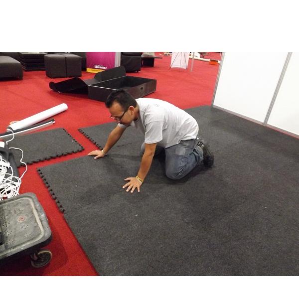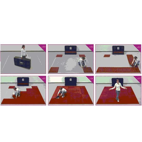 Alfombra portátil, ultra ligera con sistema anti fatiga, fácil de mover para su recolocación, modular para cubrir cualquier espacio, borde con declive que proporciona continuidad entre el suelo y la alfombra.