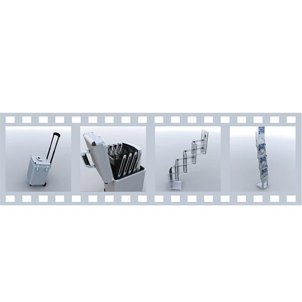 Gracias a su exclusivo diseño y su inteligente construcción, Brochure Stand es el medio perfecto para exponer su perfil en cualquier entorno y para transportar sus folletos.