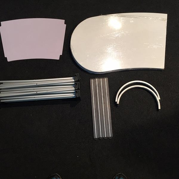 Módulo colapsable con barras de imán para colocar gráfico, cuanta con tablas internas para formar repisa, y tabla superior