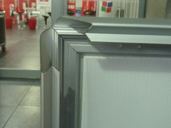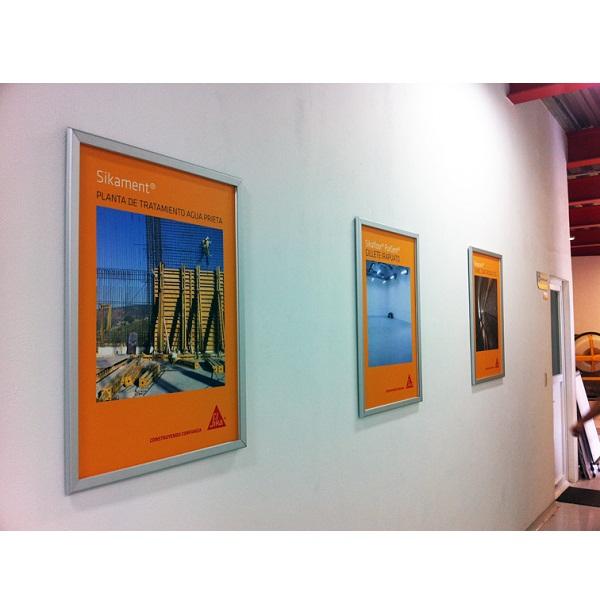 Estructura de aluminio para colocar gráfico en la pared con perfiles abatibles para sostener el grafico, incluye mica de protección. Todos los lados se abren para un rápido cambio de gráfico