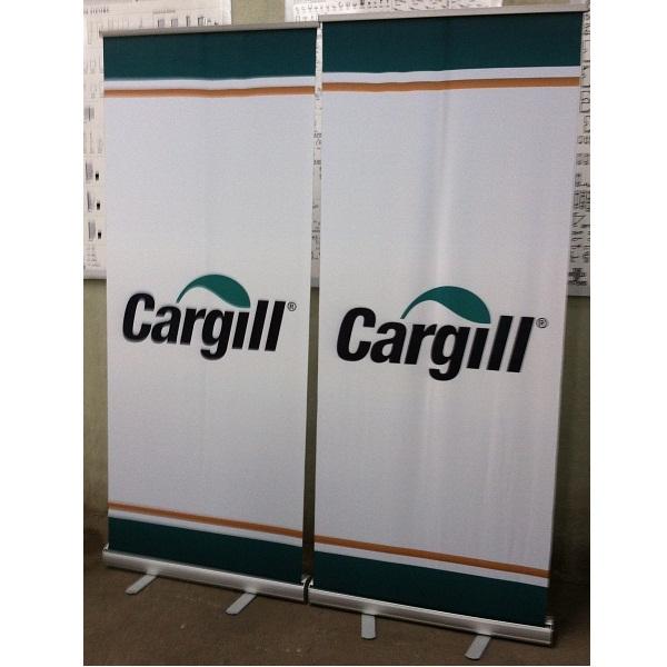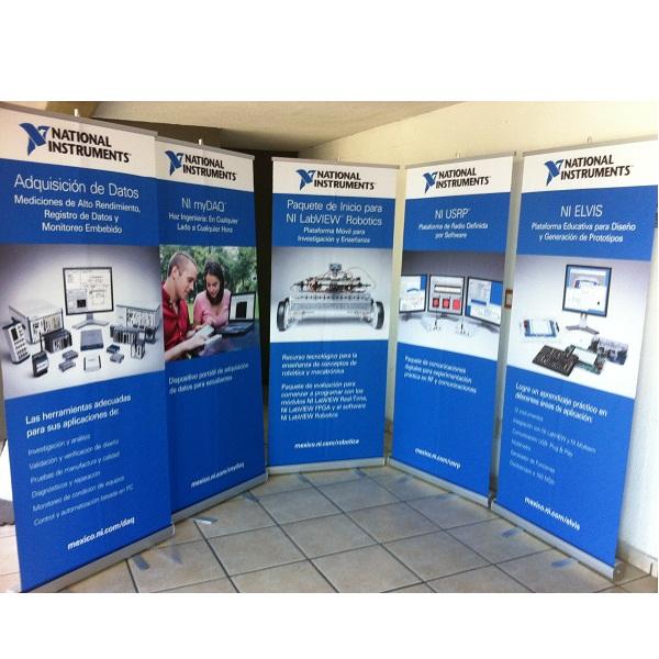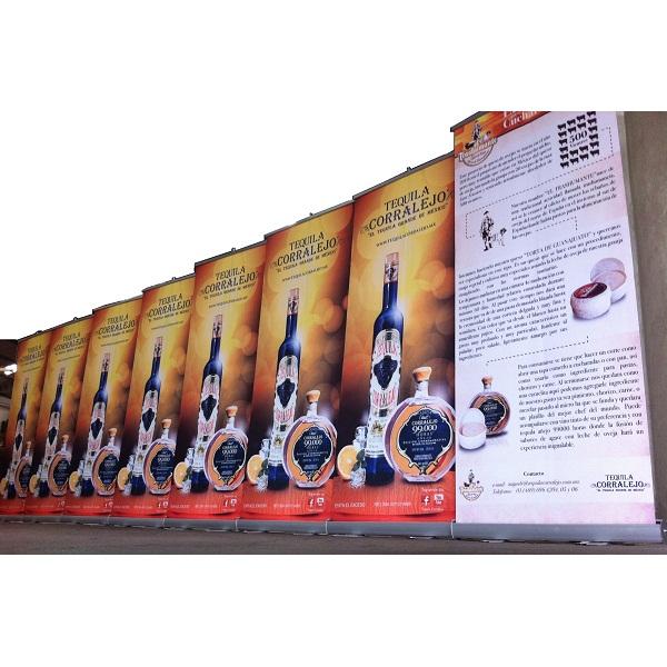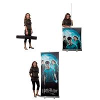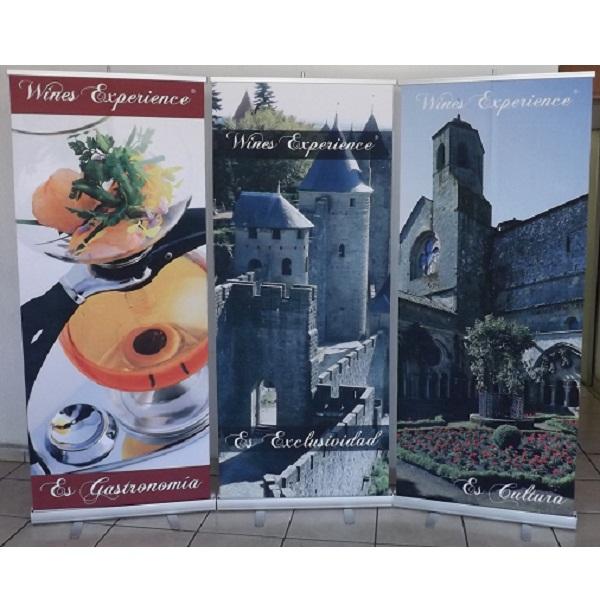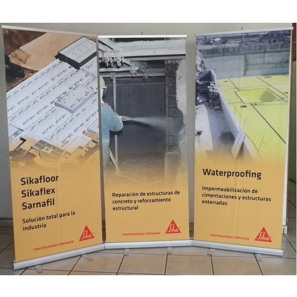 El más combativo de nuestra línea de roll up, sistema retráctil de resguardo de un gráfico intercambiable de 84 cm de base por 200 cm de altura y poste de tres secciones.