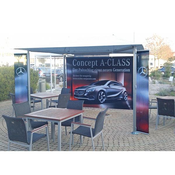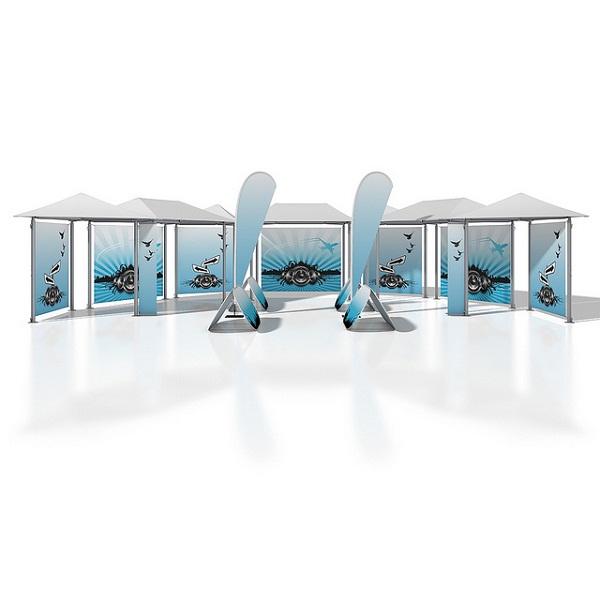 Diseño exterior único y atemporalopciones de diseño variablesinfinitas combinaciones y extensionesaccesorios. folletos, estantes, pantallasFácil montaje de pancartas y banderastelescópico para el ajuste de la altura.