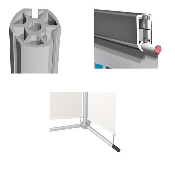 Nuevo display promocional con dos posibles alturas que gracias a la versatilidad del mástil y de los diferentes perfiles permite configurar con un mismo display diferentes variantes del mismo.